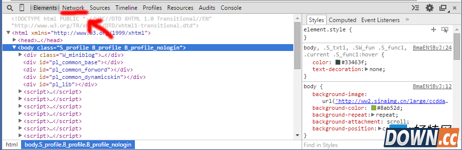 3.按F12键,一般浏览器都是F12,如果没效果,那么就去找“开发人员工具”或“开发者工具”,几乎都是这个名字,一般都在工具菜单下,或帮助菜单下。 出来后是这个样子地,会出现在浏览器的下方: