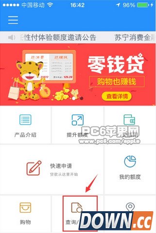 苏宁任性付还款流程 1、打开任性付app,点击查询/还款。