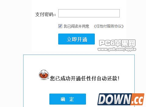 3、使用成功后,点击自动还款开通按钮。 4、输入支持密码,确认开通即可(首次设置需输入支付密码手机验证)。