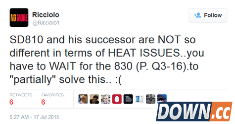 骁龙810发热是高通无法面对的痛,面对用户的质疑,他们没有面对,只是在默默的推进速度,寄望骁龙820能够快点出来。现在有外媒报道称,一位名叫Ricciolo的线人向他们爆料称,骁龙820也会很悲剧,因为它根本无法摆脱骁龙810同样的噩运,没错还是高发热。此外,这位线人还强调,安心等待骁龙830吧。