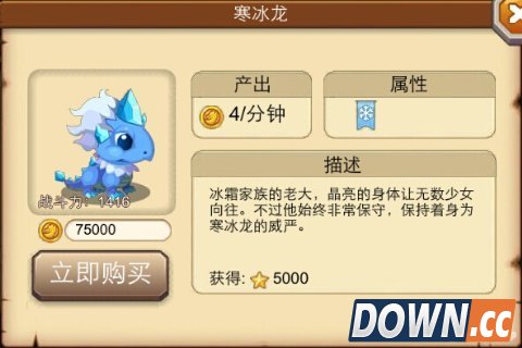 在游戏商店中,胶龙的定价是300魔晶一只。 初级的战斗力是2191,每分钟12金币的产出。 【配方】 1.胶龙+胶龙=胶龙 2.胶龙+飞泥龙=胶龙