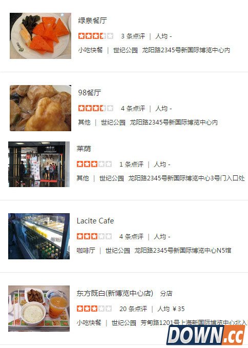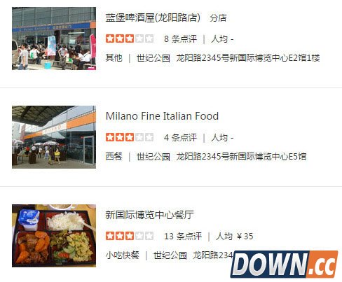 住宿OK后,就到美食环节!去过ChinaJoy的同学们都知道,在展会期间要吃上饭是很困难的事,因为展会期间,周边人员暴增,造成吃饭难的问题。那要吃饱又要吃好,一起来看看展馆的周边究竟有哪些好吃的? 展馆附近的餐饮: 西餐厅(展馆南入口大厅1楼) 永和大王(龙阳路2000号) 自选餐厅(展馆南入口大厅2楼) 肯德基(龙阳路2000号、银霄路393号) 福记餐厅(W2馆,W3馆夹层) 麦当劳(龙阳路2345号) 麦当劳(W5馆夹层;E1馆B4室) 85度C(龙阳路2100号) 98餐厅(E3馆,E4馆夹层) 味千拉面(银霄路393号) 棒约翰(E4馆B1室) 鹭发美食(龙阳路2233号) MILANO咖啡(E5馆R1室) 真锅咖啡馆(龙阳路2277号) 食客(E5馆B2室) 天天渔港(龙阳路2277号) Lacite咖啡(E6馆R1室) 大拇指广场(芳甸路199弄) 展馆室外广场的临时餐饮点 九间堂会馆(芳甸路599弄1号) 现场便利店 全家便利店 (W1馆B2室;W3馆B2室;E3馆B1室) 日富印务(E2馆B1室) 周边超市、商店 苏宁电器(龙阳路2000号) 家乐福联洋店(芳甸路185号) 百安居(银霄路393号)