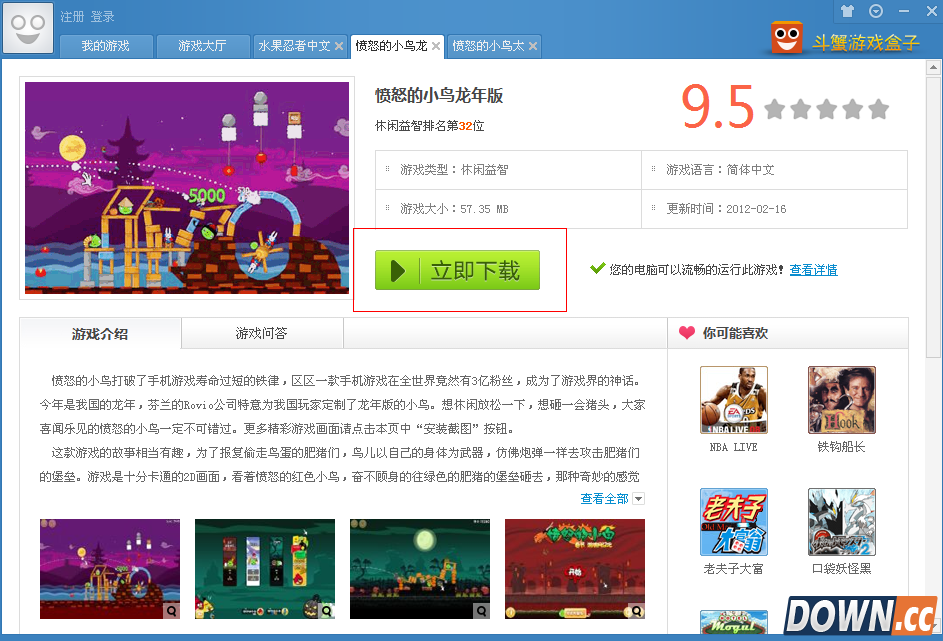 如何通过斗蟹游戏盒子下载游戏?答:通过斗蟹游戏盒子找到并打开你想要下载的游戏页面,点击“立即下载”即可开始下载游戏。详情如下图。