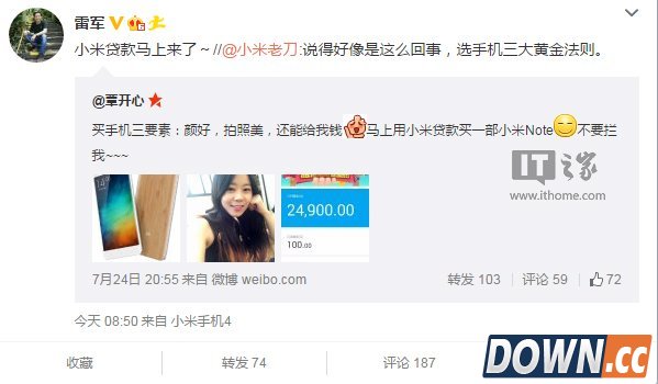 7月25日消息,此前有消息称小米最新的金融产品“小米贷款”即将内测,今天小米创始人雷军在微博上证实了这一消息,雷军表示“小米贷款马上来”。