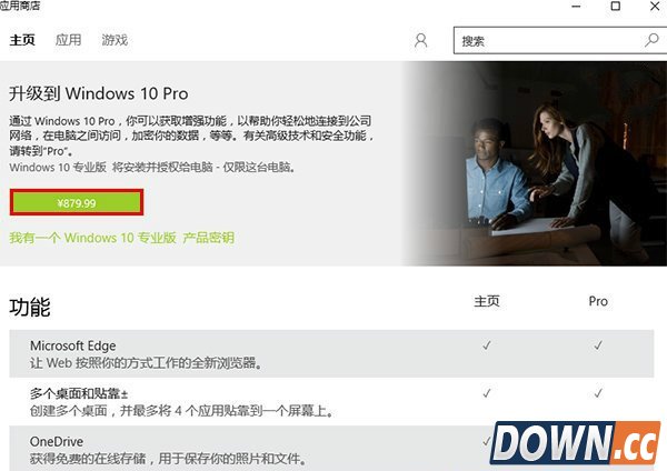 在Windows应用商店中,Win10家庭版升级专业版的中国区价格已经揭晓:879.99元人民币。在之前得到的消息中,Win10家庭版升级到专业版美国区的价格为99美元(约合人民币615元),比中国区价格低大约265元人民币。