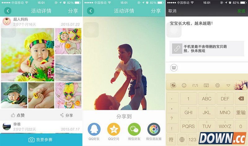 这次晒照活动集赞可以赢取大奖哦,所以赶紧把宝宝影集分享到朋友圈让亲朋好友们来支持一下吧,分享步骤也很简单,在宝宝影集的右下方有分享按钮,点击分享按钮选择分享的网站就可以啦,上次安卓版本亲子拍拍举办有奖活动没有参与的妈妈们,这次一定不要错过机会哦! |