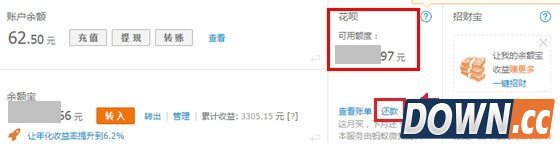 第一步:首先在电脑中登陆我的支付宝,然后点击如下图所示的“还款”。