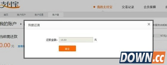 第三步:然后再输入还款金额,点击确定后到收银台页面,支持还款渠道:余额、余额宝、储蓄卡快捷、储蓄卡网银,完成点击“确定”即可。