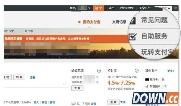 第一步:点击页面左上角的“客户服务”进入后再点击“自助服务”