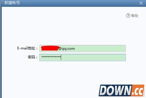 4、输入需要添加的邮箱帐号密码。然后依次点击“完成”→“确定”即可