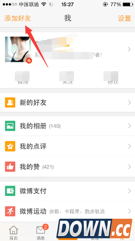 手机新浪微博怎么添加好友呢?其实微博添加好友的方法有许多种,比如扫一扫、当面加好友、搜索昵称等,选择一项方便的添加好友技能是微博用户必备的哦!下面,小编将为大家带来手机新浪微博添加好友图文教程,希望能够帮助到大家。 手机微博怎么加好友 1、在进入微博首页后,选择我,在左上角即可看到添加好友的选项,如图: