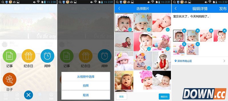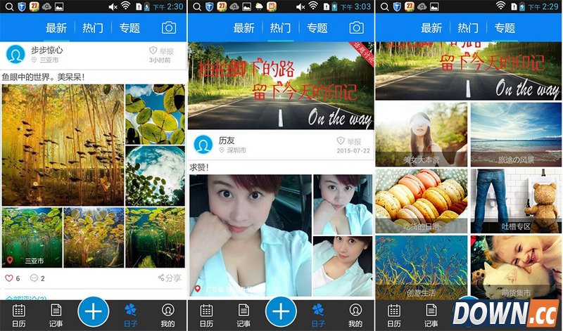 此次改版最值得期待的就是日子版块的丰富及功能的优化,首先一直以来比较单调的单图分享改为多选发送,一次性最多可发布6张图片,让分享更加随心所欲不受限制。另外,还增加了专题模块,将所有的分享都分门别类,便于用户根据个人信息兴趣便捷查看喜爱的内容,无论你是颜值控、吃货还是段子手爱好者,在这里都能找到组织哦!