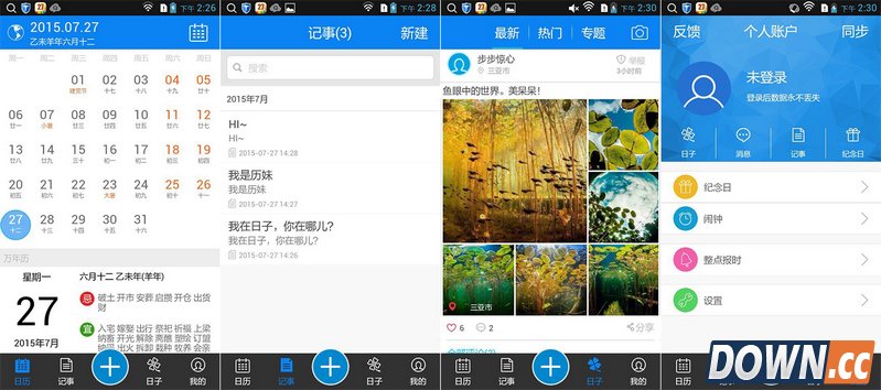 人生日历app安卓版的主界面版块还是由“日历、记事、日子、我的”四个主要版块组成。在这次的新版中,最基本的日历查询、记事功能得到优化,使整个界面看起来更加简洁清爽,赏心悦目。另外最新版还在启动速度和运行性能方面进行优化,包括启动速度、页面切换速度、同步记事等方面,更新后你会感觉使用起来非常流畅舒心哦。