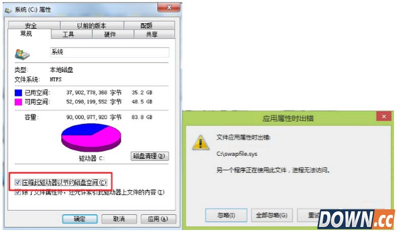 2. 请您取消上图红色框处的“√”,然后点击“应用”。系统会自动进行“解压缩”操作。 3. 在系统自动解压缩过程中,您可能会遇到如下错误提示,请您点击“全部忽略”即可。 |