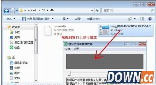 2、如果您想播放的是安卓手机的微信语音文件,则将导出的amr文件拖拽到软件窗口即可进行播放(安卓微信语音文件为以msg开头的amr文件)。