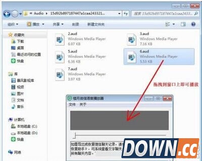 3、如果您想播放的是苹果手机的微信语音文件的话,方法也是一样的,只需将aud文件拖拽到窗口上进行播放。