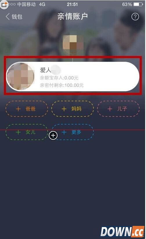 2、在亲情账号里,会有你之前创建的亲情账户,我们点击一下进入;