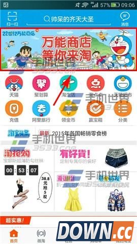 淘宝砍价刀在哪 1)打开手机淘宝,在上方推广栏滑动找到【万能商店等你来淘】并点击进入;(如下图)