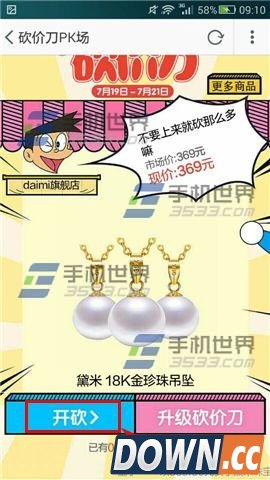 手机淘宝砍价刀使用方法: 3)选择要进行砍价的商品,点击【开砍】;(如下图)