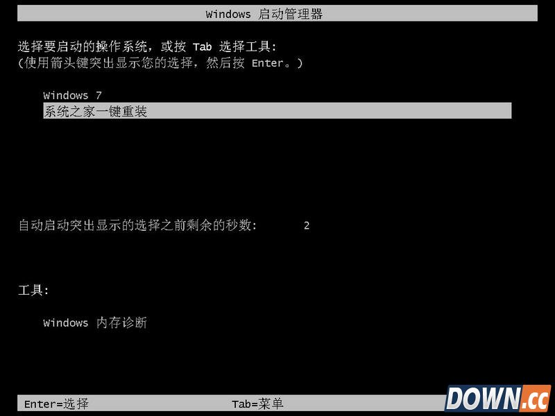 6.点击立刻重启后,电脑自动重启进入启动项选择菜单。默认选择系统之家一键还原。如图六