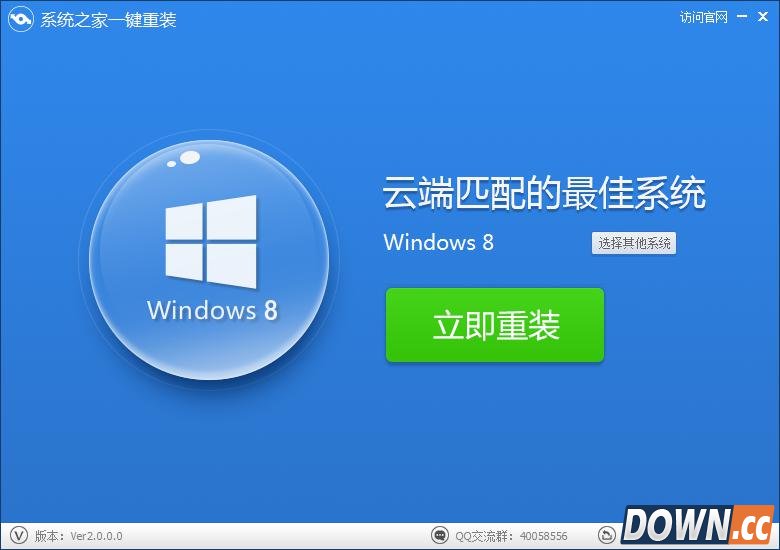 2.双击运行系统之家一键重装重装工具,并进入软件主界面。选择Windows8 64位操作系统,点击立即重装进入下一步。如图二