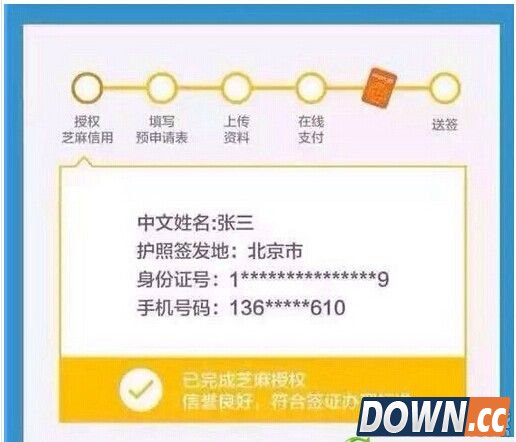 2、在支付宝中查看芝麻信用分是否符合申请标准,然后填写签证申请表