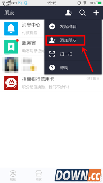 前两天支付宝更新了9.0版本,新推出了朋友功能,所以现在的支付宝可以像微信、QQ那样添加好友和建群了,这下买东西找人付款可有得选择了!不过因为刚推出的新版本,可能有些用户还不知道怎么添加好友,那么下面小编就教大家怎么在支付宝里添加好友,一起来看看吧。 第一步:先要更新到支付宝钱包的最新版本,然后进入支付宝主页面点击下方的“朋友”选项。