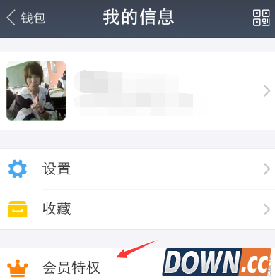 2、点击头像后进入到“我的信息”面板,这里我们找到“会员特权”选项并点击打开。