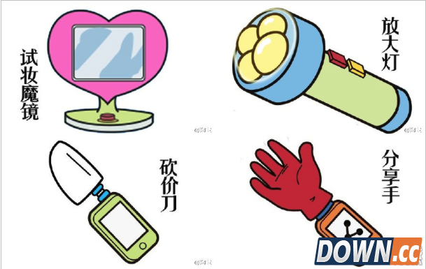 淘宝万能道具是什么?手机淘宝将携手哆啦A梦开启第一个淘宝万能周,用户将体验到未来的购物方式。双方还合作推出了四款“万能道具”,分别是“试妆魔镜”、“砍价刀”、“放大灯”以及“分享之手”。