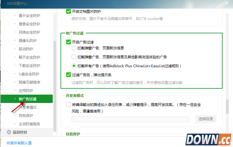 4、找到ie广告过滤,点击