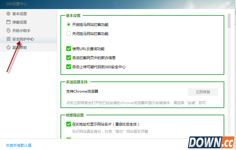 3、进入安全防护中心