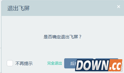 1、服务状态: v 这里是飞屏功能的控制开关,通过此处可以开启或关闭飞屏功能。当开启飞屏后,其他同一网络下的设备可以发现并连接此电脑。当关闭飞屏后,其他设备无法发现该电脑。 2、设备信息: v 您可以修改设备名称。其他设备在搜索到您的设备时,他将看到这个名称。 v 您可以修改访问密码。如果此处不输入密码则表示无需密码即可连接。如果此处输入密码,则当同一网络下的其他设备发现并试图连接电脑时,需要输入此处的密码。 v 名称和密码修改后即时生效。 3、启动设置: v 当您勾选“开机时飞屏自动在后台启动”后,您的电脑开机时将自动在后台启动飞屏功能。默认情况下此项不勾选。 4、关闭主窗口: v 退出时询问:选择此项后,您每次关闭飞屏时都将询问您具体关闭的方式。 v 仅关闭主窗口,后台运行:选择此项后,您每次关闭飞屏时不再询问,直接关闭主窗口,但飞屏将仍在后台运行,其他设备仍可连接和使用。 v 完全退出:选择此项后,您每次关闭飞屏时则直接全部关闭,其他设备无法连接使用。如果当前已有设备连接,则自动关闭相关服务。 说明:您首次使用飞屏时,此项默认选择为“退出时询问”。当您关闭飞屏时,会弹出询问关闭方式的面板(如下图)。如果您勾选“不再提示”,然后选择“完全退出”或“后台运行”,则设置中的选项自动会变为“完全退出”或“仅关闭主窗口,后台运行”。如果您不勾选“不再提示”,则以后关闭飞屏时仍会提示,同时设置中的选项仍然为“退出时询问”。