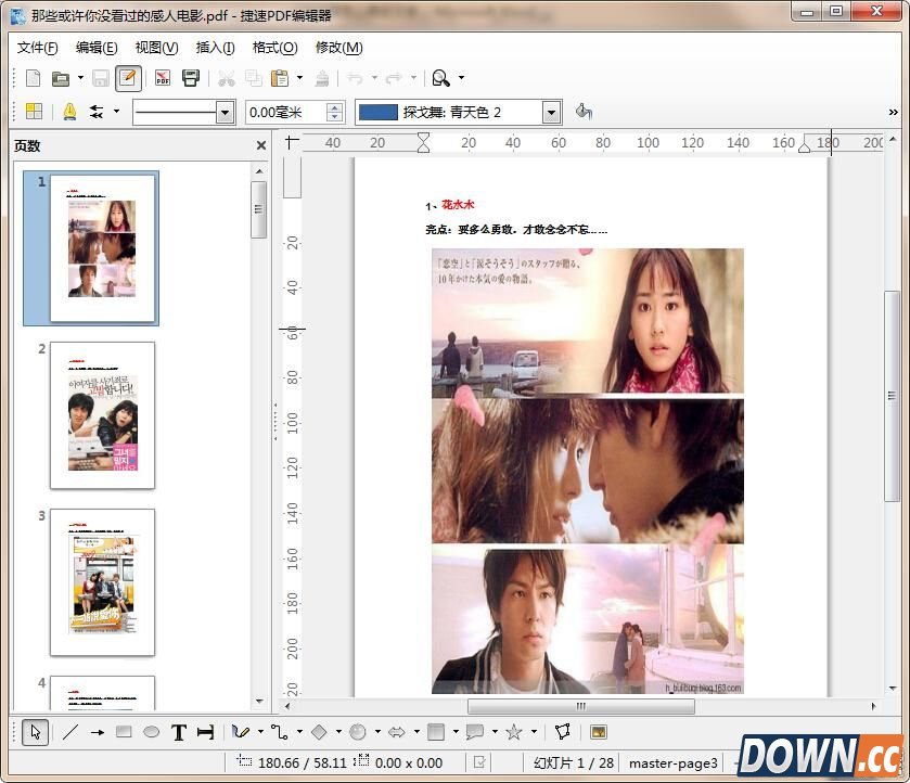 3、打开一个pdf的文档之后,我们可以看到捷速PDF编辑器的菜单栏上多了一些选项,那是因为有了可编辑的pdf文件,这些选项才会显示出来,另外,从编辑器窗口中,我们可以看到这个pdf文档内容,如图所示: