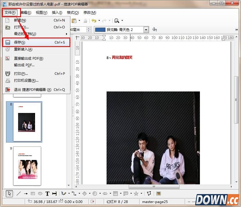 6、当文字内容修改好之后,大家可以点击“文件”——“保存”,将修改结果存储下来。