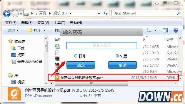 第三步:文件加密成功,大家再打开该文件时,就会被提示需要输入密码。