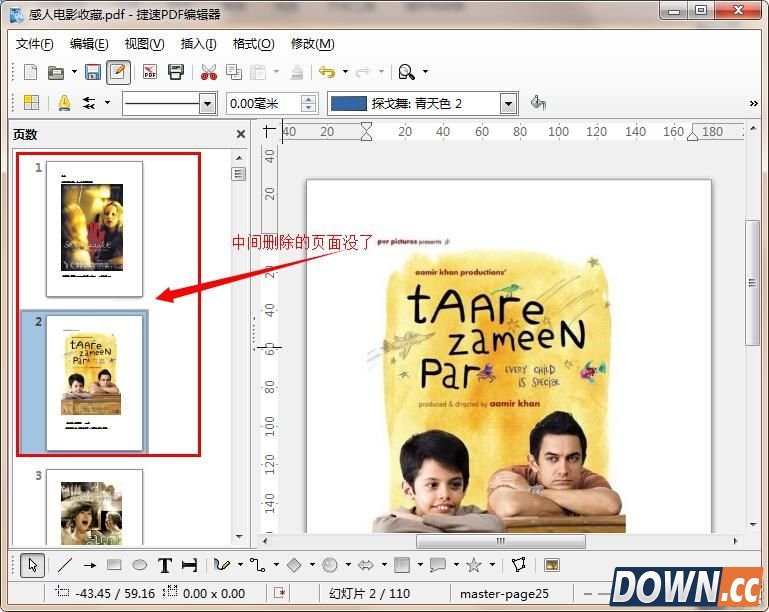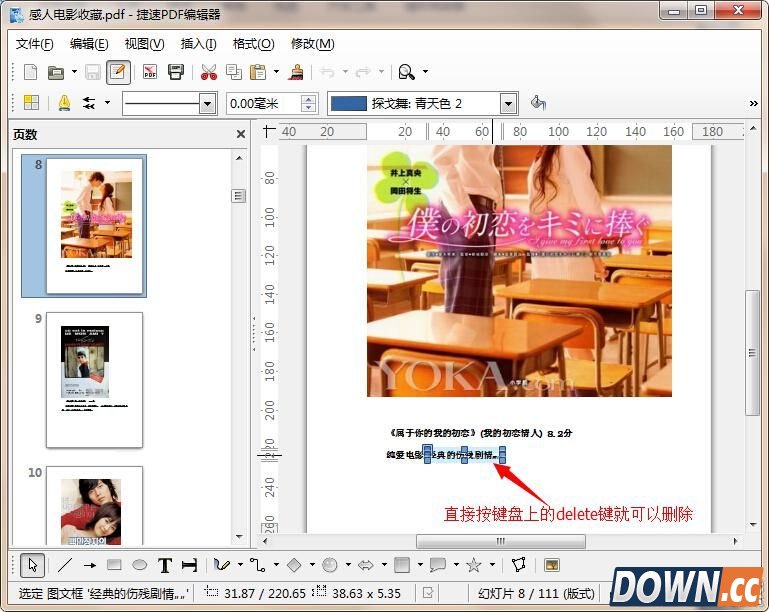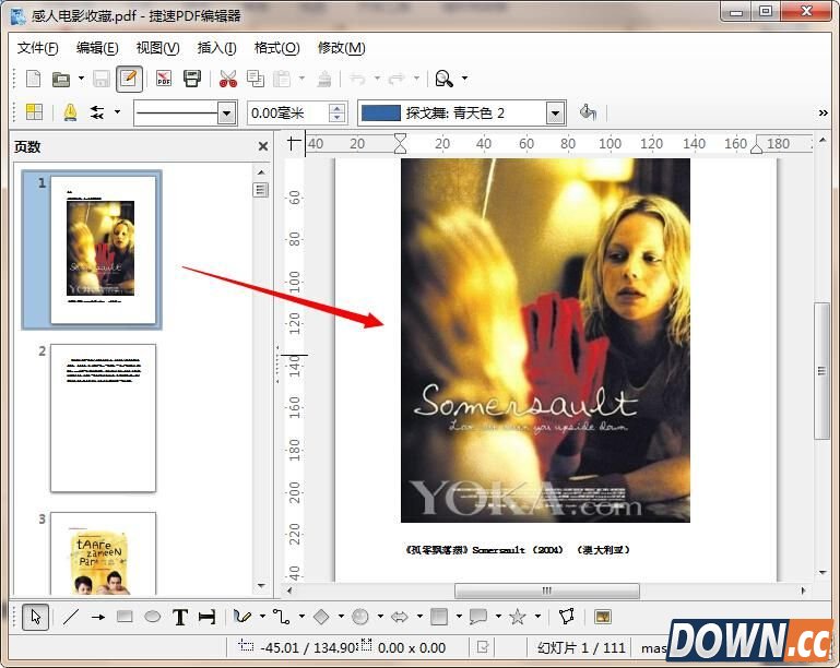 2、pdf文件打开后,大家可以看到软件左侧显示了pdf的页数内容,右侧是选定页的内容,用户可以直接多右侧中的页面内容进行编辑、修改。
