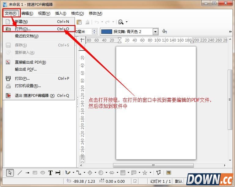 大家都知道,要打开一个特定格式的文件,就需要特定的兼容软件支持,就比如pdf文件,要打开pdf文件,就必须特定阅读软件的支持,可大家都知道,我们电脑中是兼容pdf文件的软件的,要想解决pdf文件怎么打开问题,就必须下载安装一款pdf阅读器,如何用户需要打开pdf文件的同时,还要解决pdf文件如何编辑的问题,最好是下载安装一款PDF编辑器。这里,小编就来给大家介绍一款出色的PDF编辑器——捷速PDF编辑器,只要拥有该软件,大家就可轻松解决pdf文件怎么打开和如何编辑问题,轻轻松松解决烦恼。 pdf文件如何编辑?首先用户需要在电脑中下载安装捷速PDF编辑器,然后打开捷速PDF编辑器,开始进行编辑操作。 1、在打开的捷速PDF编辑器中,点击软件左上角的“文件”——“打开”,在打开的窗口中,找到需要编辑的PDF文件,将其添加到软件中打开。