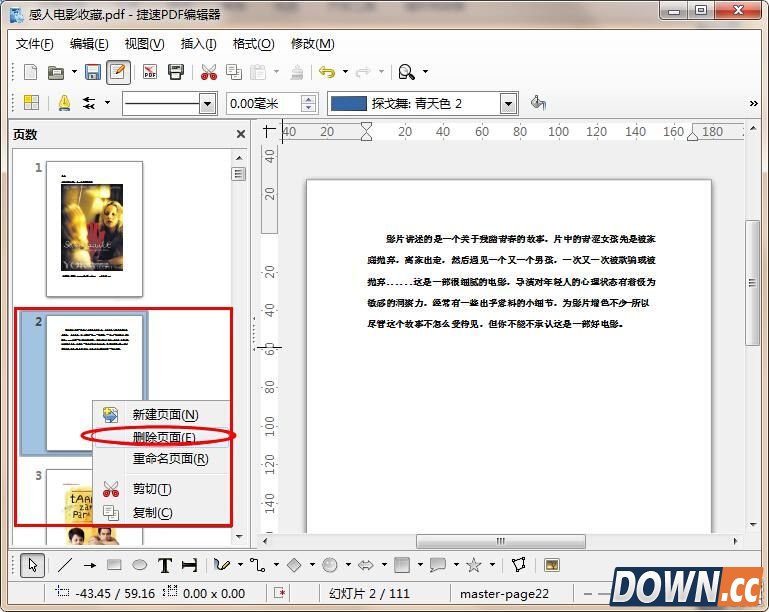 4、如果用户需要删除一个页面的内容,可以直接选定该页面并右击,然后选择“删除页面”,这个页面内容就会被删除。