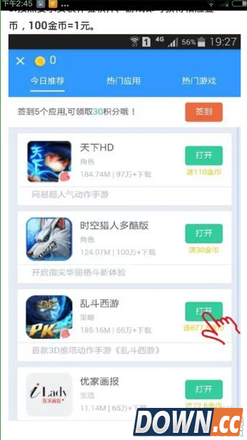 3、按照要求安装体验软件、游戏即可获得相应金币,100金币=1元