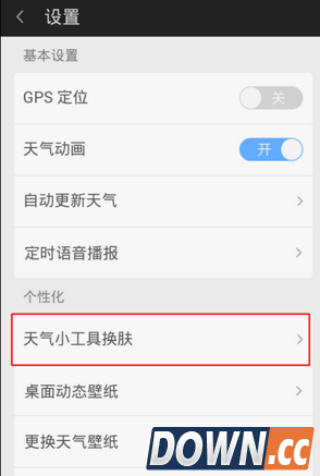 3、进入设置页面后,继续点击【天气小工具】