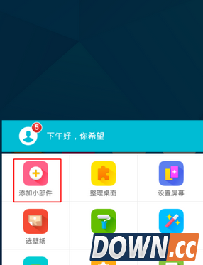 5、然后返回桌面,【呼出菜单选项】接着选择【添加小部件】