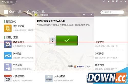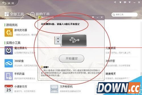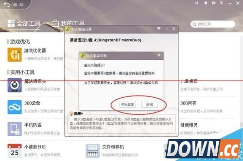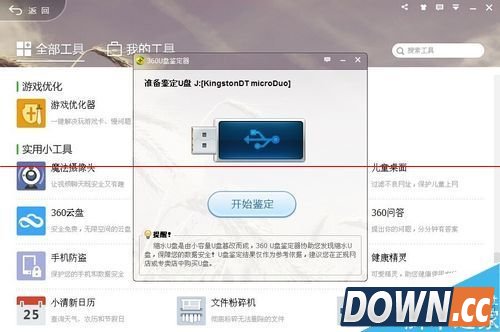 8、也可以在360U盘小助手弹出的U盘窗口进行鉴定。