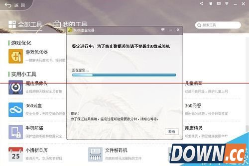 7、经过几分钟后,鉴定完成。在鉴定的过程中,不要去动U盘,也不要操作U盘里的内容。