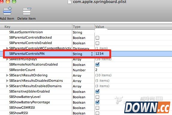 找到"SBParentalControlsPin"这个项目