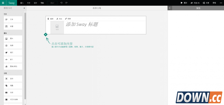 8月6日消息,微软数字内容展示工具Sway团队宣布,Windows 10版本已在应用商店上线,整合了网页版功能,以及对PC和平板电脑的支持。 去年年末,微软团队便已发布Sway应用,但主要通过网页端实现。Sway的正式发布意味着能够在离线模式下对多媒体资源进行整合和设计。 相比起预览版,Win 10版Sway提供垂直滚动和横向平移两种布局,这也是最普遍的需求之一。 首发版目前仅支持PC和平板电脑,预计接下来将发布Sway for Windows Phone应用。此外,Sway还将支持Surface Hub。 用户可以选择插入图片、拍照、添加文本块和添加标题这几类操作,