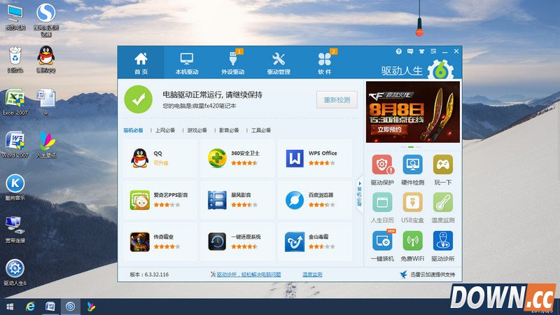 自7月29日Windows10正式版发布以来,全民都在将电脑升级到Windows10系统。虽然Windows10自身有自动更新驱动功能,但对于普通用户来说,如果在升级完系统之后出现驱动问题,依然会不知所措。尤其当Win10桌面出现异常时,更加不知道问题出在哪里。使用驱动人生6可轻松解决该问题,下面就跟随小编体验一下吧。