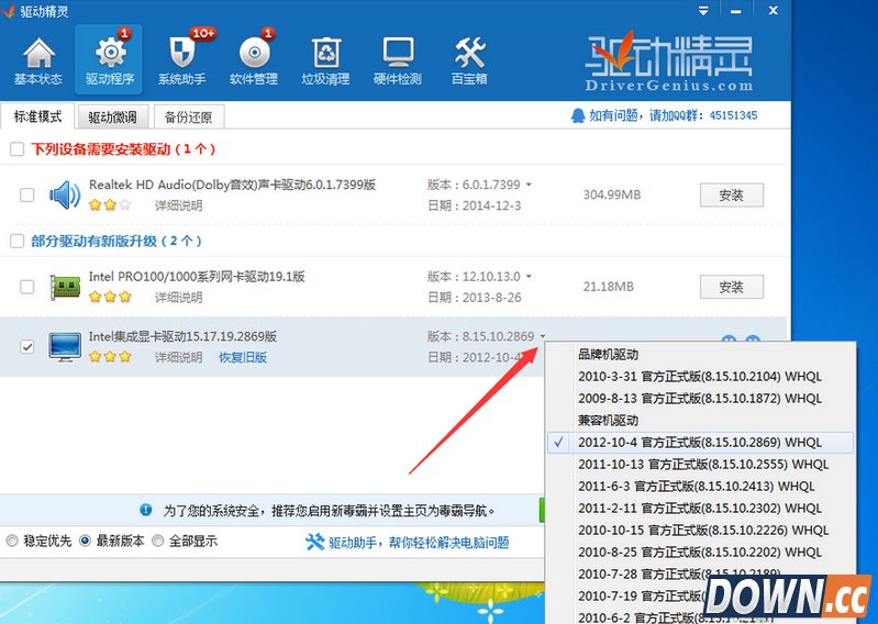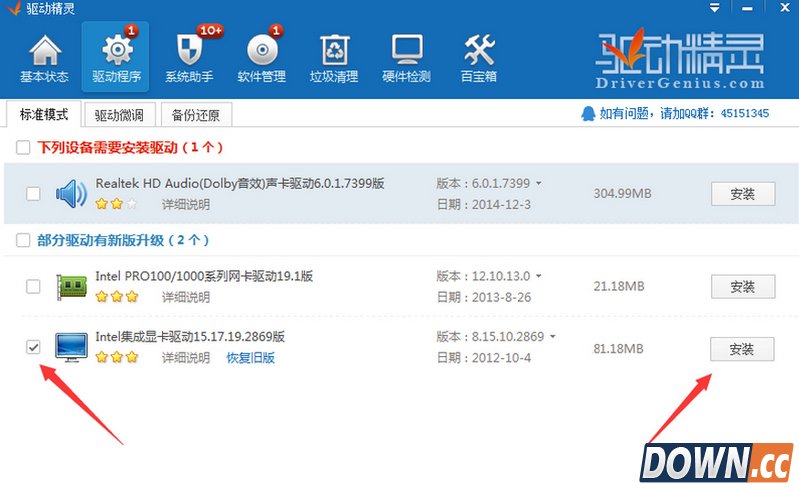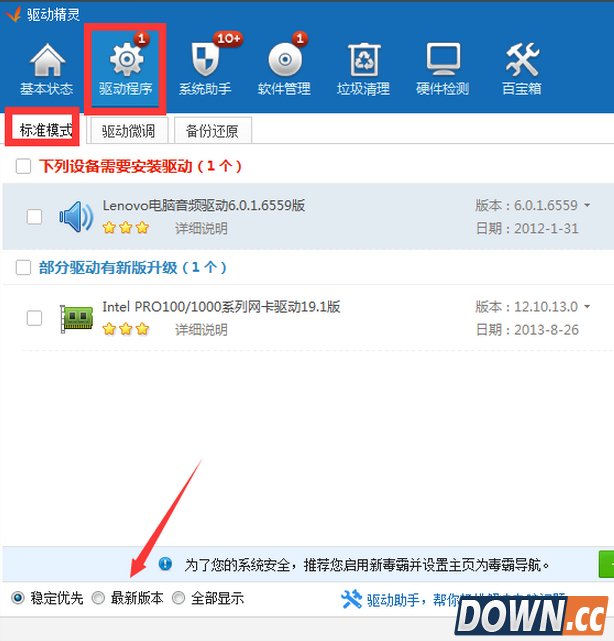 首先,更改你的分辨率,如果还是提示发生了未知的directx错误,那么进行下面的操作 安装并运行“驱动精灵”程序,切换到“驱动程序”选项卡,在“标准模式”界面中,勾选“最新版本”选项,如图所示: