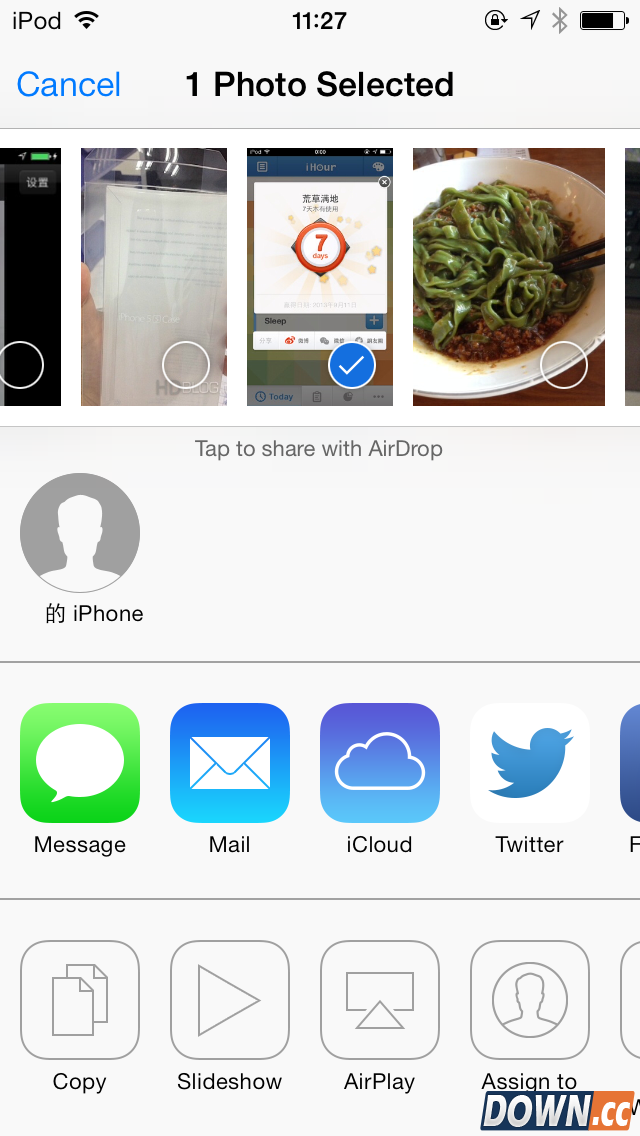 选择仅限联系人后,那么只有通讯录中的朋友能够和你共享照片、视频、通讯录,等等。只要选择你的共享对象。接着,AirDrop会使用无线网络和蓝牙搞定其他事情,根本不用任何设置,并且保证你共享内容的安全。