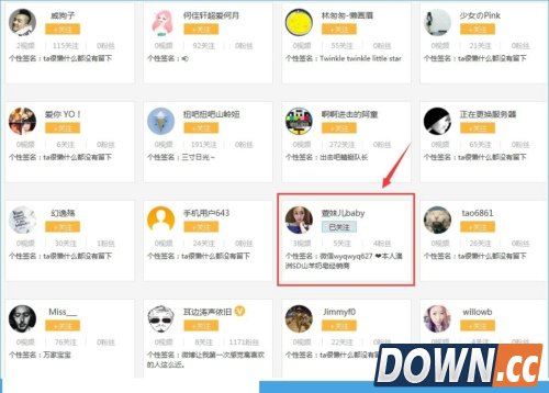 第二步:在粉丝页面中,选择你自己喜欢或是想关注的那个人。