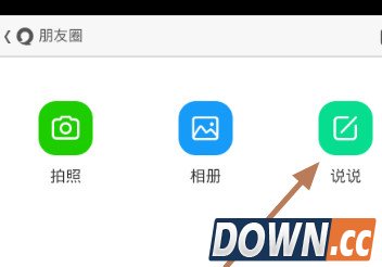 弹出功能选择,这里比微信的选择就不同了,除了相片与视频外,要发送语音,选择说说即可。